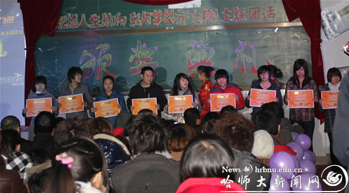 按照主题团活的评分标准,以及各班团活的综合表现,最后评出团活单项奖3项,团活先进个人10名以及优秀团活一,二,三等奖。颁奖结束后,09级电编专业的同学为大家进行了一场别开生面的团活展示——以大型情景剧为表现方式,以不同时代背景下人们对梦想的追求为中心,将团活主题融入其中,演绎了新时代下的大学生对梦想的理解与渴望,把整场颁奖典礼推向了高潮。