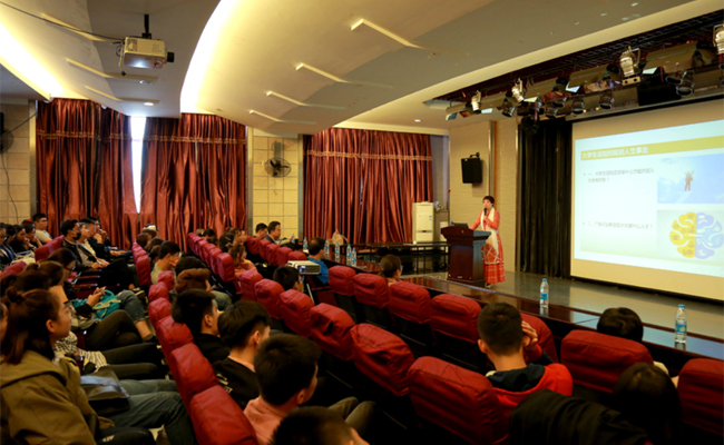 随后,杨侠结合自己大学和EMBA的学习经历,指出当代90后大学生聪慧伶俐,并成长在一个最具挑战的时代,如何成为一名能够为社会、企业和自身创造价值的适用型人才,是同学们在大学中应不断思考和实践的重要内容。杨侠在强调企业适用型人才需求状况的同时,也勉励同学们在学习中应具备团队互助的精神、向他人学习的精神和关爱社会的精神,这些人格的优点会在推动专业化学习中塑造多元技能的素养,以积极、乐观的性格适应社会需要。