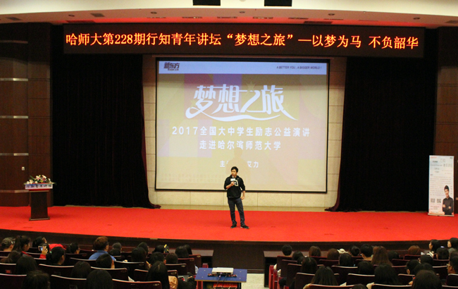 (刘强/文)9月27日,校团委在科学会堂举办第228期行知青年讲坛活动,新东方教育科技集团演讲师、《奇葩说》辩手艾力应邀做客讲坛,为师大学子分享他在逐梦路上的点滴经历,各学院索票学生600余人参加活动。
