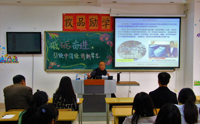 王林波老师从中国经济进入新常态、新常态面临的新任务、新常态迈向新高度三个方面介绍了中国经济与国际经济的发展趋势,阐述了中国经济与国际关系的内在联系,通过对《政府工作报告》、《2016年国民经济和社会发展统计公报》等材料的分析,指出我国经济要迈向新的高度,就要坚持走具有中国特色的新型工业化、信息化、城镇化、农业现代化道路,加快实施创新驱动发展战略,着力实现供给侧结构性改革。王林波老师希望同学们要正确理解中国经济新常态的内涵;要相信以习近平同志为核心的党中央有能力带领我们实现中华民族的伟大复兴;要不断提升自我,努力成为一名适应新时代经济发展的高素质人才。王林波老师的讲座生动活泼、诙谐幽默、哲理深刻、振奋人心、催人奋进,赢得了现场热烈的掌声。