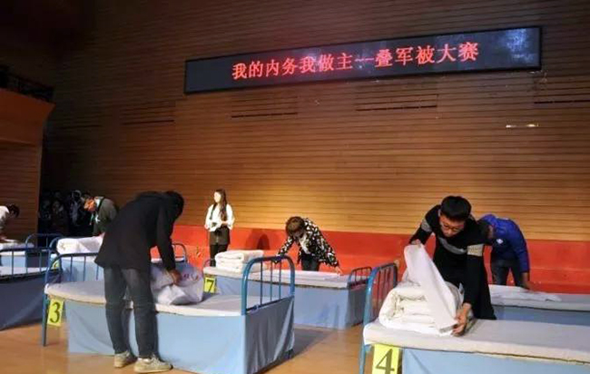 开幕式结束后,本届寝室文化节第一项活动“我的内务我做主”叠军被大赛正式开始。