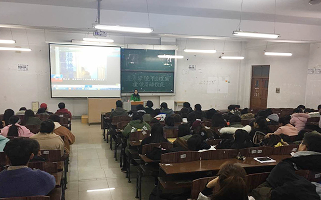 当日晚自习,学院举办2017级学生“师生喜迎十九大,全员携手铸平安”主题团日活动,学院2017级31个团支部全部参加了活动,各支部按照同一内容以不同形式组织开展了本次团活。各支部同学以饱满的热情投入到活动中,积极制作了板报并布置了班级。活动中同学们在教室内进行了有关平安校园的相关故事讲述、征文演讲、歌舞文艺演出等。