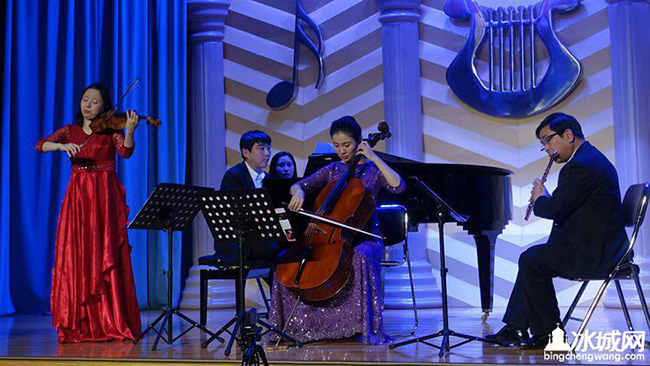 (左游/文)为庆祝党的十九大胜利闭幕,10月29日晚,我校音乐学院管弦系教师党支部在工人文化宫音乐厅举办了“美丽中国”红色旋律经典室内乐专场音乐会。文化宫领导,音乐学院党委书记冯丽伟与哈市二百余名音乐爱好者共同观看了演出。