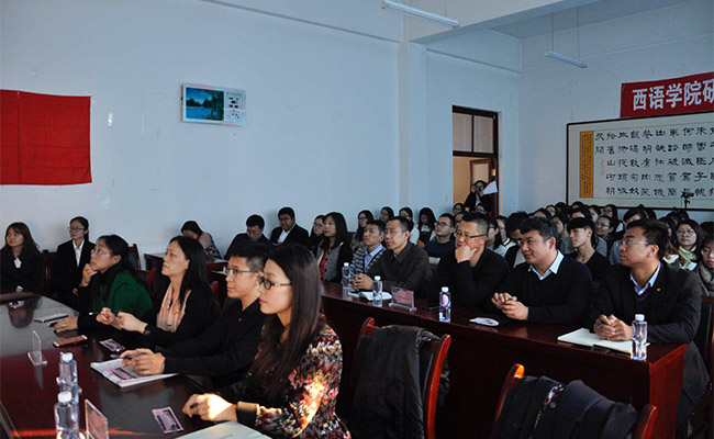 (庄锦涛/文)为深入学习十九大精神,贯彻“两学一做”学习教育常态化制度化,培养专业情志,按照学院党委十九大系列学习课程化计划,西语学院党委于11月1日下午在西语楼527室举办了学习十九大报告双语讲解大赛总决赛。学校“两学一做”及作风整顿工作督导组长统战部长王阿诺、西语学院党委书记李贵彬及本硕生党员到会观摩。学院党委副书记刘春玲,副处级辅导员杨晓明、专任教师王颖和任兵担任比赛评委。