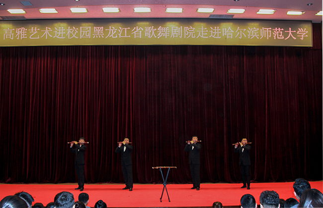 为丰富校园文化生活,陶冶学生情操,增强学生对高雅艺术感受力,提升学生的艺术素养,推动高雅艺术走入校园、贴近学生,11月7日晚,黑龙江省歌舞剧院高雅艺术进校园专场演出在我校科学会堂举办。江北校区各学院师生代表600余人观看了演出。