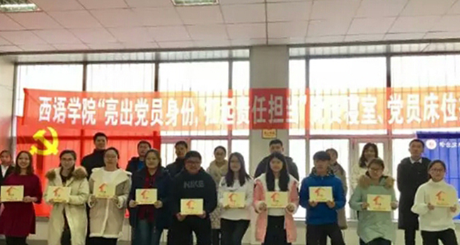 西语学院举行“亮出党员身份,扛起责任担当”党员寝室、党员床位挂牌仪式