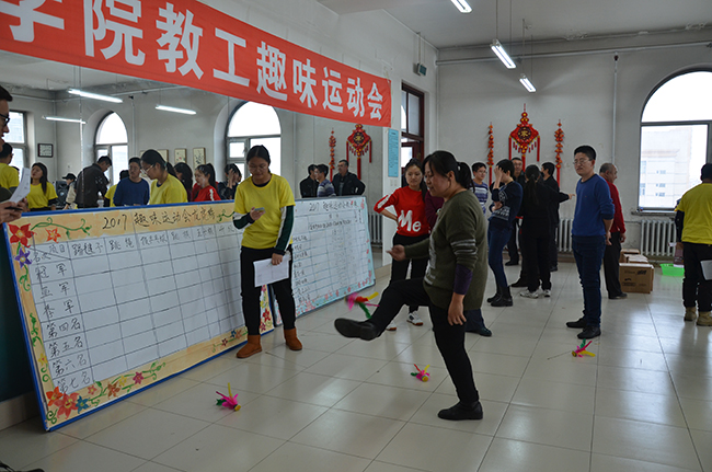 (刘国权/文)为进一步激发学院教职工学习宣传贯彻十九大的主动性、积极性和创造性,增强学院教职工的爱校爱院情怀、岗位幸福感和工作成就感,为学院发展建设打造一支信念坚定、学识扎实、品德高尚、敬业爱生、身心健康的教职工队伍,11月22日,化学化工学院举办“迎评献礼十九大,强身健体化工家”教职工趣味运动比赛。学院党委书记王晓光、院长曲凤玉、工会主席张玉山等参加比赛。