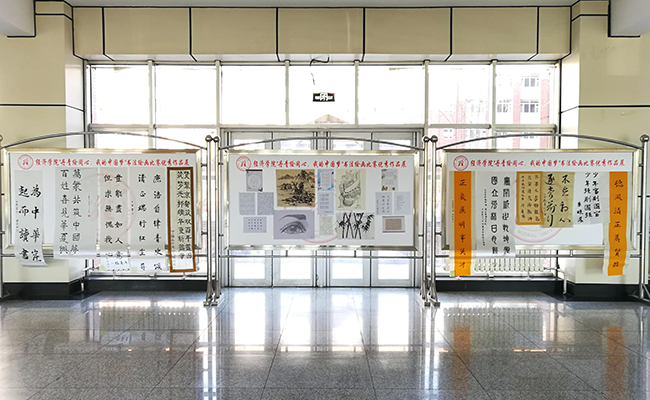 本次作品展共分为三个阶段:征集阶段、评比阶段、展览阶段。学院通过线上线下相结合的方式进行大力宣传,共征集130余件书画作品,大赛评委秉承公平公正的原则,共评选出一、二、三等奖近30件作品进行展出表彰。参赛作品中既有娟秀工整的正楷,也有行云流水般的行书,更有恣情挥毫的草书。软笔与硬笔,风格迥异、各具特色,同学们通过书法、绘画等独特的民族艺术形式,讴歌民族脊梁、传写精神风骨、弘扬民族精神,表达了对党的十九大确立的新时代、新使命、新思想、新征程的喜悦心情,展示了学院弘扬优秀传统文化的育人成果。