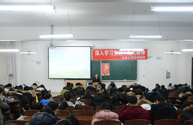 张志君从新举措、新思想、新党章、新班子四个方面对党的十九大精神进行了系统、全面、深入的讲解。对党的十九大的鲜明主题、习近平新时代中国特色社会主义思想、党的十八大以来党和国家事业发生的历史性变革、中国特色社会主义进入新时代的重大意义、我国社会主要矛盾变化的深远影响、“两个一百年”奋斗目标等进行了分析和解读。重点讲解了十九大习近平新时代中国特色社会主义思想,详细解读了十九大报告中的“八个明确”和“十四个坚持”,并强调了将新思想写入新党章的重要意义,党的十九大立足时代和全局的高度,着眼中国特色社会主义事业长远发展,郑重地提出习近平新时代中国特色社会主义思想,并把这一思想确立为我们党的指导思想,实现了党的指导思想的又一次与时俱进。