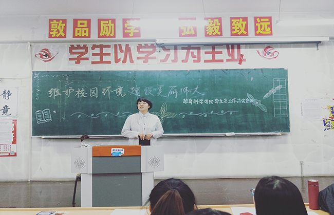 近期,校园小广告铺天盖地,久治不绝,严重影响了校园环境。校园的环境卫生工作不仅是物质文明建设的重要内容,更是精神文明建设重要内容,教育科学学院特召开“维护校园环境 ,共建文明教科”主题会议,号召大家应提高个人素质,提高环境意识,为打造美丽师大校园环境贡献自己的一份力量。学生干部们集思广益,为校园内乱贴广告纸等问题提出了多种解决办法,会议达到预期效果。