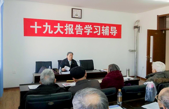 (董立国/文)12月28日上午,离退休工作处在离退休活动中心三楼多功能厅举办了学习党的十九大报告辅导报告会。聘请了91岁老教授张志君同志作了题为“认真学习贯彻十九大精神”的辅导报告。离退休党员和在职党员干部60多人参加,报告会也是离退休党员的一次集体学习会,报告会由离退休工作处党委书记董立国主持。