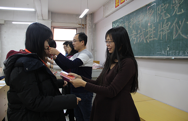 (张明月/文)为进一步深入贯彻党的十九大精神,强化学生党员的党性意识、责任意识,充分发挥好学生党员的模范带头作用,教育科学学院于12月28日下午在社科楼629举行学生党员诚信考试挂牌仪式,出席本次仪式的有教育科学学院党委副书记王清艳及各年级辅导员老师。