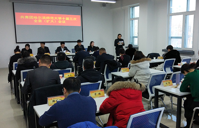 (刘强/文)为深入推进我校共青团改革,统筹做好学校共青团工作,明确2018年目标与方向,1月11日上午,我校团委在江南校区哈师大双创园召开共青团哈尔滨师范大学十届三次全委(扩大)会议。校团委书记王洪新,副书记王若虎、毕坤,共青团哈尔滨师范大学十届委员会委员、校团委工作人员、各单位团委负责人、校团委兼职团干部、校研究生会主席、校学生会主席40余人参加此次会议。会议由王洪新主持。