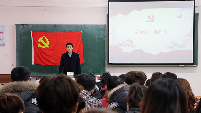 (翟力/文)为认真学习贯彻党的十九大精神,坚持在学懂、弄通、做实上下功夫,扎实推进“两学一做”学习教育常态化制度化,经济学院学生党支部于3月7日下午,在崇师楼A201室召开了专题学习活动。经济学院党委书记王辉在专题学习会上做了《新时代新作为》的专题报告,经济学院党委副书记翟力、学生党员参加了此次报告会。