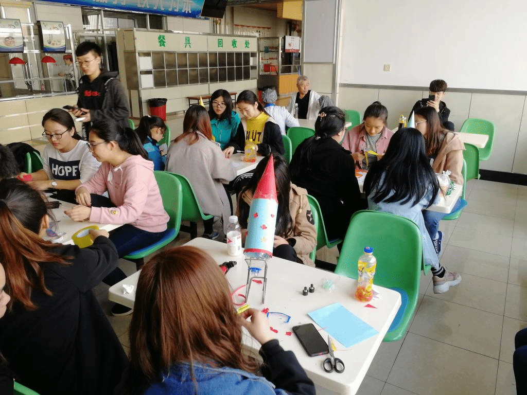 (孟威/文)为积极响应十九大精神,深入贯彻落实《哈尔滨师范大学大学生思想政治教育“112349”工作模式实施方案》,培养大学生设计、制作和创新能力,提高大学生科技创新素养,倡导科技创新工作的精神。2018年4月1日上午,地理科学学院在二食堂进行了水火箭创新创意设计制作活动,并在室外进行了水火箭飞行比赛。
