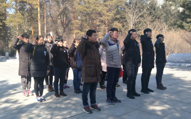 十点半左右,志愿者到达哈尔滨烈士陵园,安静有序地沿着林荫小路走进烈士陵园。在路两旁的墙上,挂满了后人为烈士们的题词。站在朱瑞将军墓碑前默哀,向烈士致敬,学生代表朗诵悼念词,铿锵有力,抑扬顿挫。大家依次向烈士献花,并在墓碑前庄严宣誓。