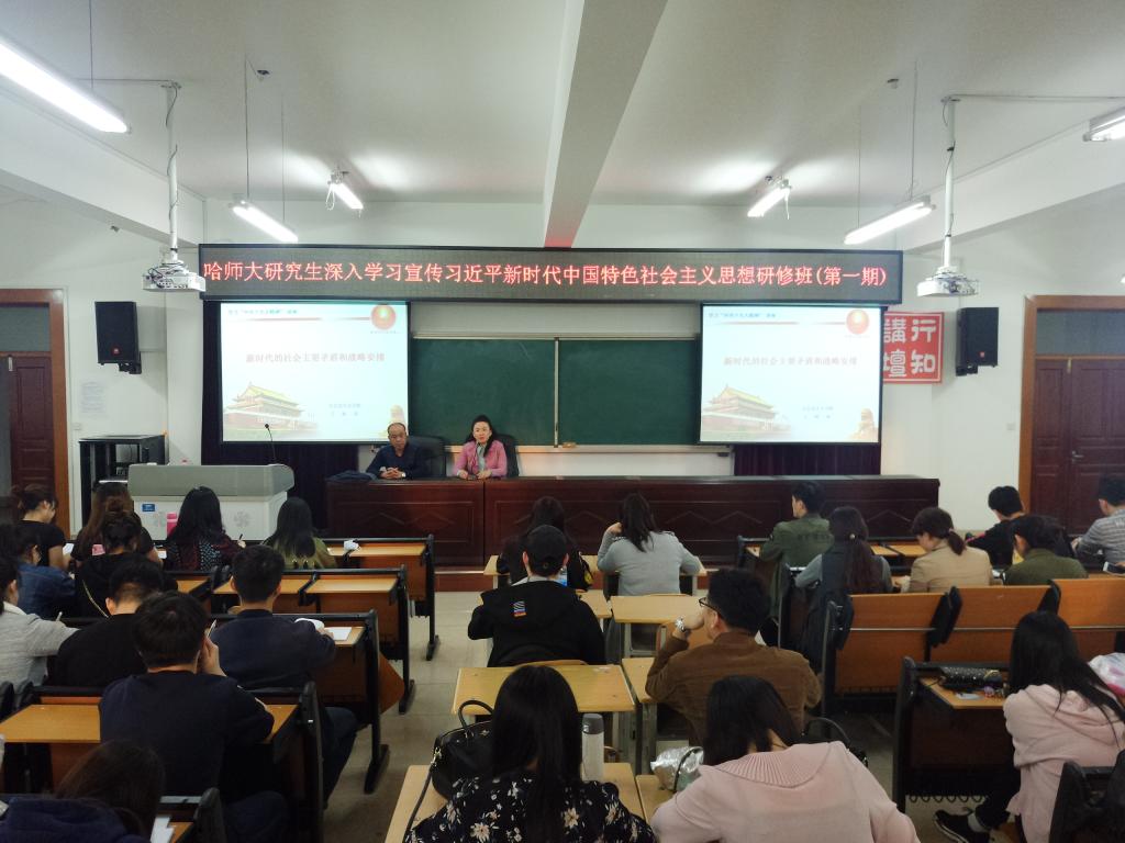 (李超宇)为深入学习宣传贯彻党的十九大精神,4月18日下午,党委研究生工作部在研究生楼412教室举行了党的十九大精神专题学习活动。哈师大党的十九大精神宣讲团成员、马克思主义学院王林波副教授主讲,研究生深入学习宣传习近平新时代中国特色社会主义思想专题研修班(第一期)全体学员参加学习,党委研工部常务副部长张艳君主持。