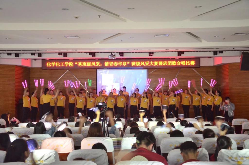 (刘国权/文)为进一步贯彻落实我校大学生思想政治教育“112349”工作模式实施方案精神,切实围绕学生、关照学生、服务学生,培育优良院风、班风,推动活力团支部和先进班集体创建,4月18日,化学化工学院举办“秀班级风采 谱青春华章”班级风采大赛暨班团歌合唱比赛。化学化工学院正处级辅导员、党委副书记张玉山出席活动并担任评委。学院全体政工干部、2017级同学参加活动。