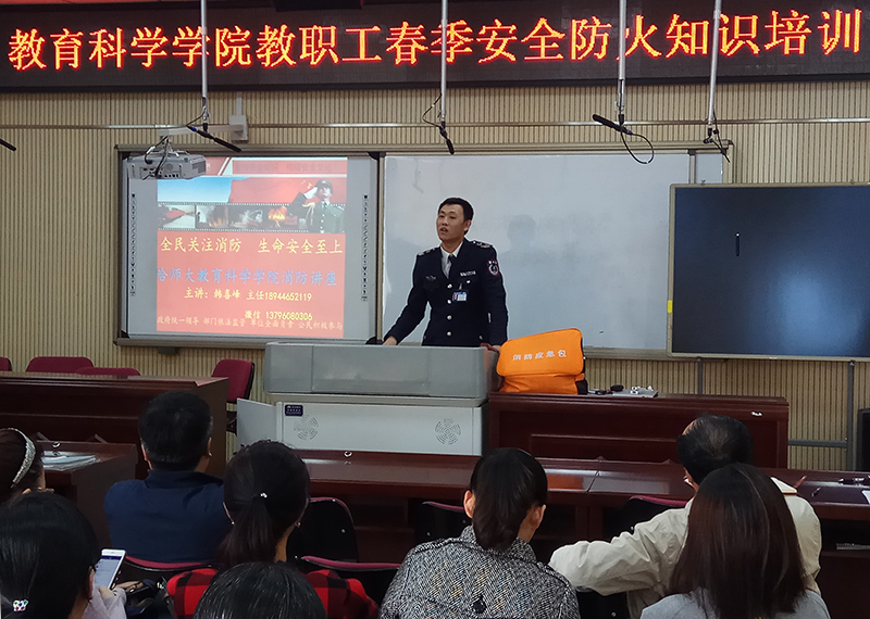 (林善城/文)为加强学院教职工安全防火意识,提高消防技能,4月18日下午,学院邀请了省消防安全培训中心的韩喜峰教官为全院教职工进行了防火知识培训。