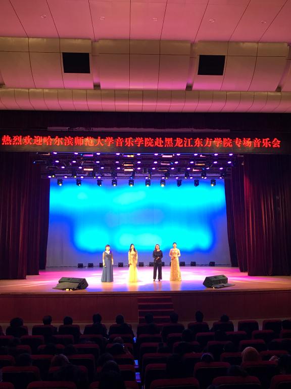 (朱静宇/文)为了将高雅艺术融入校园文化建设,提升校园文化品位,丰富校园文化生活,引导大学生弘扬优秀民族文化,提高艺术和文化素养,促进大学生全面发展,音乐学院于4月17日在黑龙江东方学院举办了“2018年高雅艺术进校园——哈尔滨师范大学音乐学院赴黑龙江东方学院”专场音乐会,来自黑龙江东方学院的近千余名余名音乐爱好者共同观看了演出。