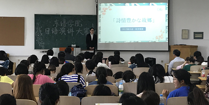 学院副院长金锦善强调了本次大赛的目的和意义,为参赛选手加油鼓劲。选手们语言标准流畅,演讲富有感情,内容丰富,态度端庄大方,表现出较高的专业水平和较强的心理素质。2015级李紫薇、2016级董丽媛获得大赛一等奖;2015级沈必卓、郜立平、2016级胡翌冲等获大赛二等奖;2015级金子祺等获得三等奖。日籍教师菊池实教授对大赛进行了总结和点评,对选手们的表现给予了肯定,并表达了对选手们的殷切希望。