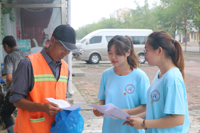 7月12日,服务团在杜蒙县开展了“青马工程”——践行社会主义核心价值观理论宣讲活动。服务团成员们紧紧围绕着“国情社情”这一主题,以社会主义核心价值观、党的十九大、2018年政府工作报告中的一系列惠民政策为主要内容,走上街头、走进社区,通过发放宣传单、访谈、讲解等形式,针对不同层次、不同领域的市民开展宣讲调研活动。服务团成员们共计发放300余份宣传单,进行个人访谈53次,活动得到了广大居民的认可和赞扬。