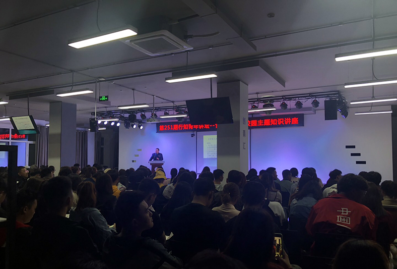 (毕坤/文)9月13日晚,学校团委举办的哈师大第251期行知青年讲坛在双创园二楼创青汇举行,本期讲坛邀请的嘉宾是哈尔滨市南岗区市场监督管理局和兴路市场监督管理所所长黄耀滨 ,本期讲坛的主题为“食品安全进校园”。本次活动继续采用微信索票和现场索票两种索票方式,双创园二楼座无虚席。