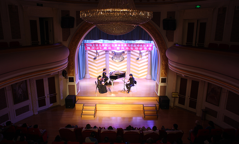 (左游/文)为庆祝新中国成立69周年,音乐学院管弦系红色旋律传承与创新特色党支部于9月29日晚在哈尔滨工人文化宫举办了“国庆69周年室内乐专场音乐会”。音乐学院党委书记冯丽伟出席音乐会,学院部分师生党员代表和哈尔滨市音乐爱好者们共同欣赏了本场演出。