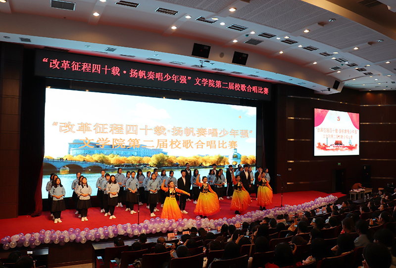 (李滨娜/文)为庆祝改革开放40年,深入贯彻哈尔滨师范大学“112349”工作方案,丰富校园文化生活,提升班级的凝聚力。文学院于10月10日下午在科学会堂举办“改革征程四十载,扬帆奏唱少年强”主题校歌合唱比赛。