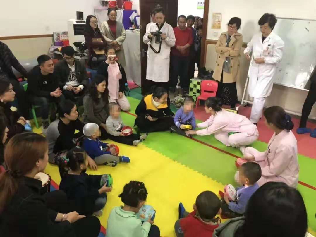 志愿者首先带领孩子们进行了一个简单的节奏感练习。志愿者手持非洲鼓敲击出节奏,让孩子们随着节奏听从治疗师的指挥做出相应动作。孩子们对于强节奏十分敏感,能够专注的听从治疗师的指挥,完成效果突出。志愿者还为孩子们带来精心准备的节目,他们精湛的技艺赢得全场热烈的掌声。志愿者也带来了一些乐器,孩子们对这些“新奇”乐器感到十分新鲜。志愿者手把手的教孩子们如何使用这些乐器,与孩子们进行音乐游戏,活动氛围十分融洽。