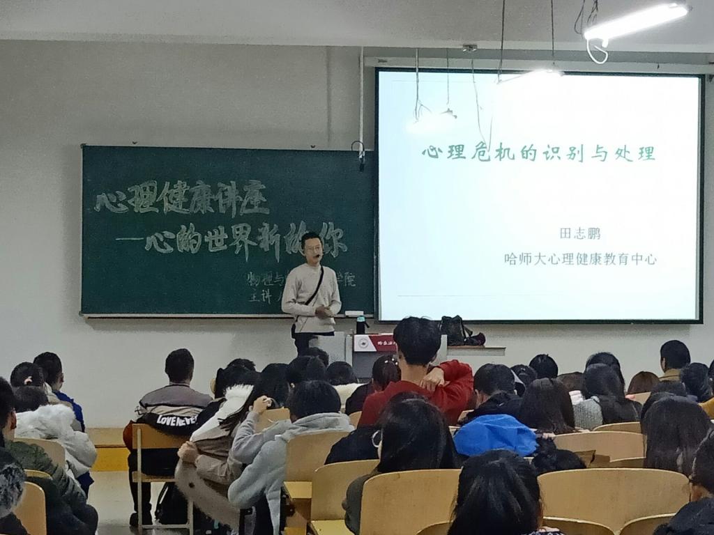 本次讲座目的在于帮助学生正确认识自己,正确对待他人,培养学生健全的人格和良好的品质,给予学生科学有效的心理咨询和辅导,使学生摆脱心理障碍,帮助学生树立在出现心理行为问题时的求助意识,促进学生形成健康的心理素质。本次讲座以“心态”和“情绪”为主要话题。田志鹏首先讲解了什么是心理健康,以及21世纪健康人的标准,接着剖析了现代大学生常见的心理问题,纠正了同学们传统观念上对于心理问题的误区。之后田志鹏强调了心理危机的识别和处理,分析心理危机产生的原因,他表示情绪的阴晴圆缺取决于个人的认知,人不是为事情而困扰,而是被对这件事情的看法困扰,鼓励同学们建立科学的、合理的认知,做情绪的主人。最后,田志鹏就心理问题产生的深层原因给大家做了分析,并就一些普遍的心理问题,提出了自我调适的方法。