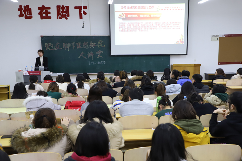 在第二讲中,陈莹莹老师以“习近平总书记在全国思想政治工作会议精神解读”为主题,展开讲述党和国家为何高度重视高等教育,高等教育培养什么样的人,如何培养人以及为谁培养人的问题,同时将党对高等教育提出的要求与青年学生自身成长成才要求紧密结合,解读了高校以立德树人为根本任务培养社会主义建设者和接班人这一问题。陈老师讲述近期准备辅导员考试的学习经历,为大家诠释了压力如何转化为动力,强调大学生要主动学习,要重理论学理论,理论联系实践全方位武装自己。同时依据近期开展的“党团进寝室”“三下乡”等活动出现的问题,讲述了遵循规律因事而化,因时而进,因势而新的重要意义,督促大家要端正自身态度,提高自身修养,要不断的锤炼求真学问,真本领的学术品格。