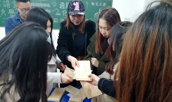 本次活动历时两天,地点设置于崇师楼A区一楼大厅。同学们将对老师诚挚的感恩,对好友的真挚的感谢,对自己中肯的鼓舞,对校园美好建设的期待,统统写进书信里,塞进投递信箱里。雷锋志愿邮差将以最快的速度为其送达。