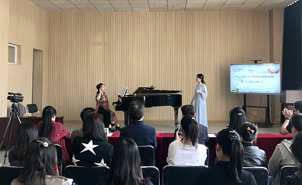 (王紫薇/文)为了更好的展现中国古典诗词歌曲的独特魅力,探究其音乐风格,进一步研究古典诗词歌曲的歌唱技巧,音乐学院于5月8日下午在艺术大厦B座106教室,举办了以“古韵今声——古典诗词风格歌曲演唱”为主题的音微课堂第26期讲座。本次活动由音乐学院付翠屏教授担任主讲人。学院副院长刘嘉宁及部分教师,各年级学生代表出席了活动。