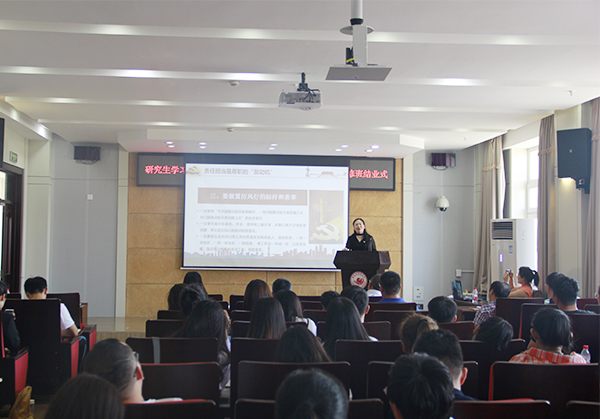 张艳君以习近平总书记在党的十九大报告提出的“中国共产党人的初心和使命,就是为中国人民谋幸福,为中华民族谋复兴”开篇,阐述了从建党初期共产党人如何坚守初心、坚定信仰,到改革开放以后直至新时代,共产党人如何顺应时代变化,肩负起人民赋予的历史使命。张艳君还结合研究生学院具体开展的实际工作和多年来的学生工作经验,围绕中国共产党的初心和当代青年学生成长成才,建功立业的时代使命,跟大家分享了自己的体会:一、理想信念是思想和行动的“总开关”,是党的思想建设的首要任务,只有坚定理想信念,才能不忘初心、牢记使命。二、规矩纪律是前行道路上的“红绿灯”,作为党员干部要加强党性锻炼,在各项工作中遵规守纪,做到心有所戒、行有所止。三、为广大师生服好务是行使权力的“基础”,要心怀师生、心系师生,要在工作中紧贴师生愿望、期盼、需求和诉求开展工作,要设身处地为师生着想。四、责任担当是履行职务的“源动力”,要做到心中有责任、有担当,主动树立看齐意识、大局意识和责任意识,尽心尽责、勇于担责。