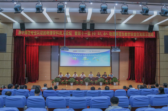 暑假期间,由我校学术理论研究部《中学物理》编辑部主办的“基于师范专业认证的物理学科育人论坛暨第十一届‘格致杯’物理师范生教学技能交流展示活动”和“第十一届物理科学方法教育学术研讨会”在阜阳师范大学成功举办。本次活动聚焦师范专业认证,突出物理学科育人特色,设“育人论坛”、“教学技能展示与交流”、“科学方法教育研讨”三个部分。哈尔滨师范大学、北京师范大学、东北师范大学、西南大学、华中师范大学、华南师范大学等63所高校的153名教师、494名本科生和研究生,以及来自全国各地的200多位中学名师参加了论坛及交流展示活动。