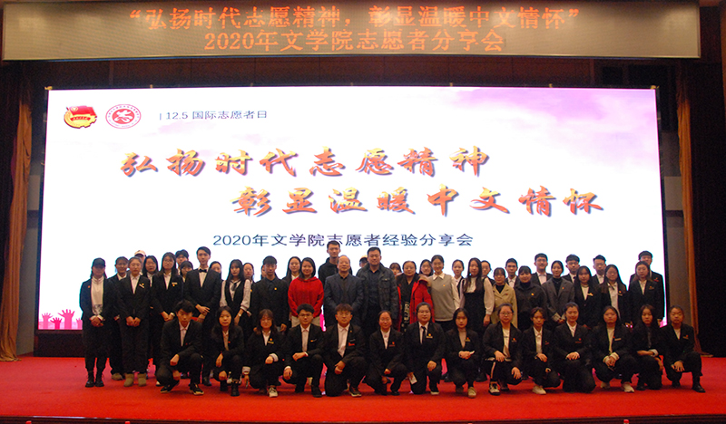 (李滨娜/文)为深入学习贯彻习近平总书记关于志愿服务工作的重要指示精神,培养青年学生的爱国情怀,弘扬奉献、友爱、互助、进步的志愿服务精神,引导广大青年学子积极投身于社会实践,文学院以纪念第34个国际志愿者日为契机,于11月26日在科学会堂举办“弘扬时代志愿精神,彰显温暖中文情怀”主题志愿者经验分享会。文学院党委书记左继亮和各年级辅导员出席本次活动。