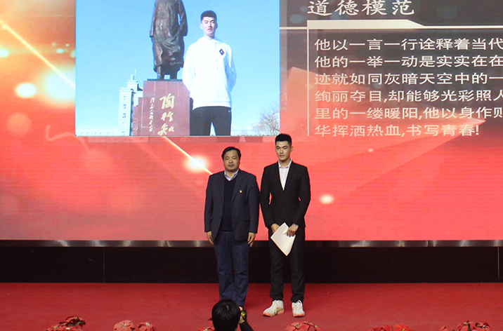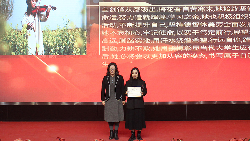 图 校党委副书记、工会主席郭砾为优秀学生模范颁奖