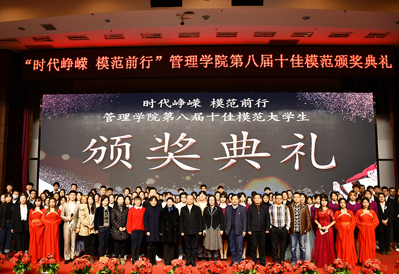 (陈凤/文)为学习贯彻十九届五中全会精神,深入落实《哈尔滨师范大学学生思想政治教育“112349”工作模式实施方案》,鼓励教师积极投身教育事业,促进青年学生全面发展,传递青春正能量,12月8日下午,管理学院在科学会堂举办了“时代峥嵘 模范前行”第八届十佳模范大学生颁奖典礼。校党委副书记、工会主席郭砾,党委常委、副校长尹剑锋,党委常委、宣传部长姜玉洪出席活动,学生工作部(学生处)、管理学院领导及全体辅导员参加活动。