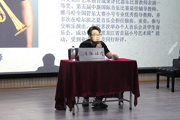 本次讲座由学院常海峰老师担任主讲。讲座开始后,常海峰向学生讲解了管乐团中的乐器角色,对长笛、单簧管、萨克斯、小号、圆号、长号六个乐器分别从简介、历史起源、用途、结构进行了讲解,每个讲解后面都有同学进行示范。常海峰重点指出:小号属于铜管乐器,在铜管乐器中,小号发出的声音最高;圆号是铜管乐器中比较圆滑的乐器,既可以和木管乐器构成木管五重奏,也可以和铜管乐器构成铜管五重奏,它既能发出铜管乐器较嘹亮的声音,也可以发出木管乐器较柔和的声音,在交响乐中,通常使用圆号;长号属于古老的铜管乐器,大多用于爵士乐队,被称为爵士乐之王,音色辉煌壮丽而饱满,声音嘹亮富有威力,弱奏时温柔委婉,在乐队中很少能被同化,能演奏半音阶和独特的滑音,在交响乐团中很少用于独奏。