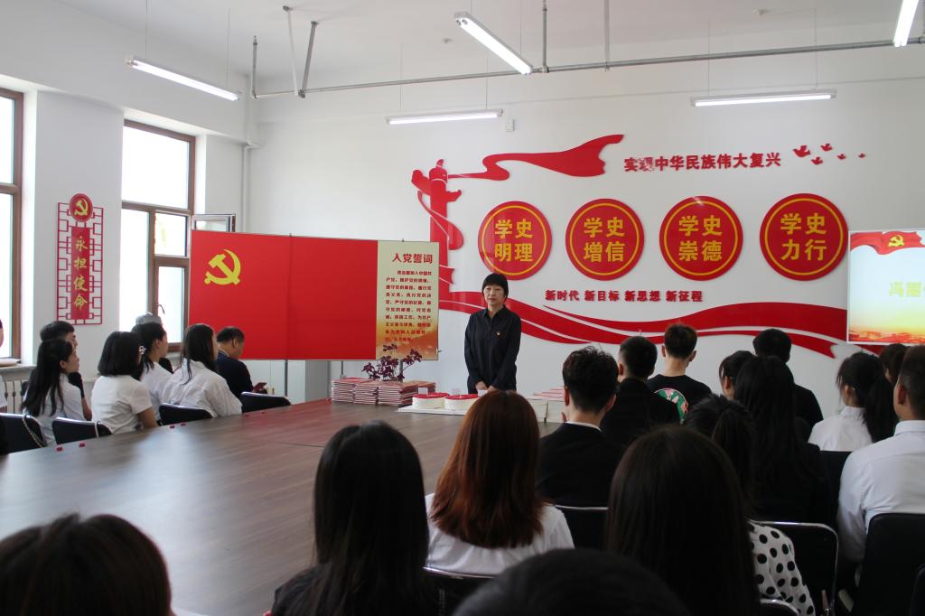 活动开始全体党员佩戴党徽齐声高唱《国际歌》,3名毕业生党员代表重温了《入党志愿书》,随后冯丽伟为毕业生党员们进行了毕业前集体谈话,分享了作为一名老党员在党组织的关怀和帮助下学习和工作的经历,叮嘱大家在以后的学习、工作中始终发挥党员先锋模范作用,用奋斗的青春书写人生篇章,体现人生价值、为党和国家做出应有的贡献。