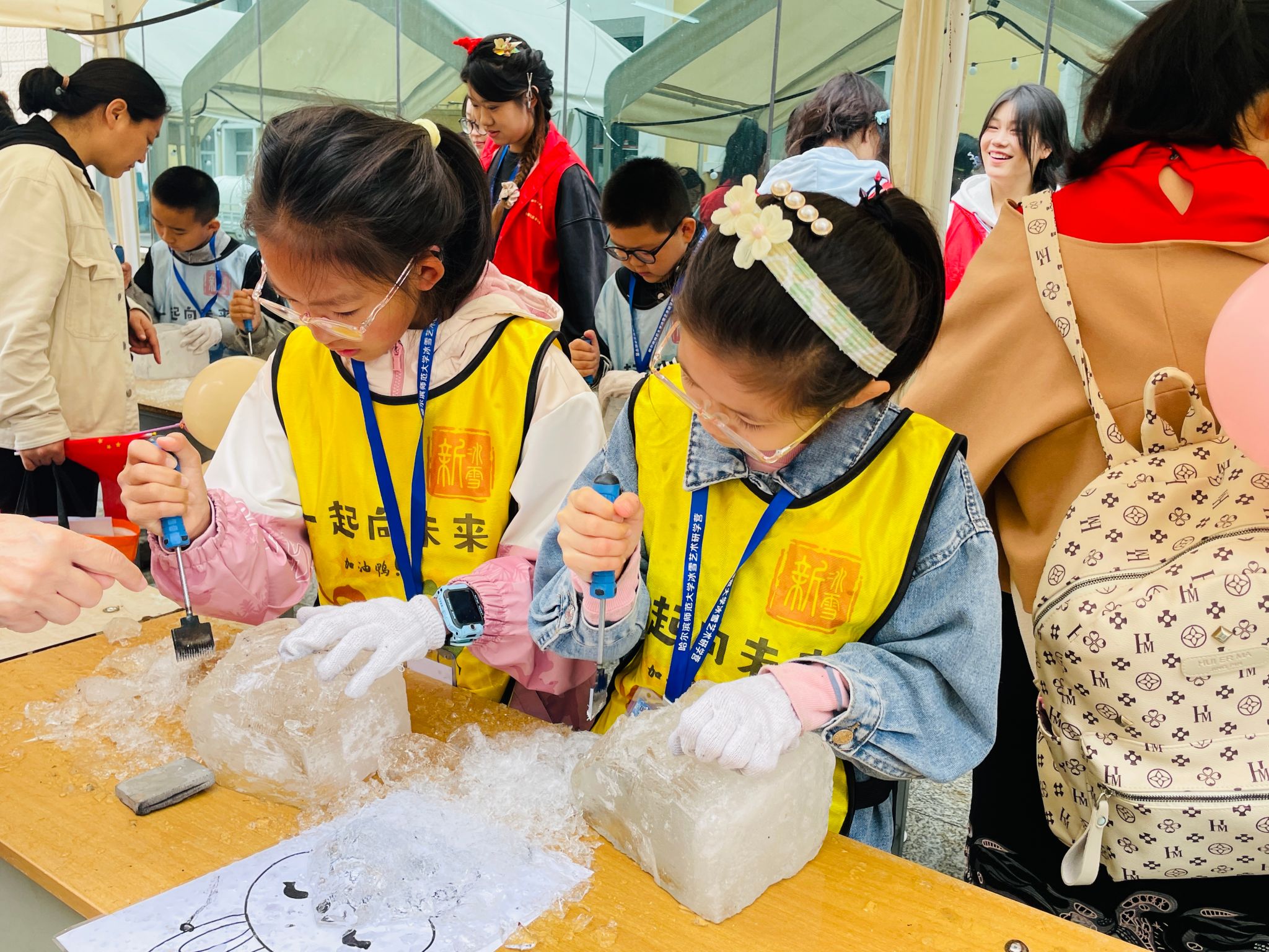 在两个校区的研学开营仪式上,工会常务副主席杨世君、副主席李立平分别代表学校发出“一起向未来”的倡议,倡议广大青少年善于实践、敢于探索,用好奇的眼睛去观察世界,用勇敢的心去面对挑战,用快乐的笑容去迎接每一天。孩子们在研学导师和大学生青年志愿者带领下,仔细聆听研学知识讲解,认真观察并记录项目设计,学习感受非物遗文化魅力,激发科学文化体育艺术创新思维,亲自动手实践+DIY制作。孩子们沉浸其中,乐不思蜀。家长们纷纷表示:“今天‘六一’儿童节,孩子来这里研学,既玩得开心也学到了知识,活动体验非常好。”