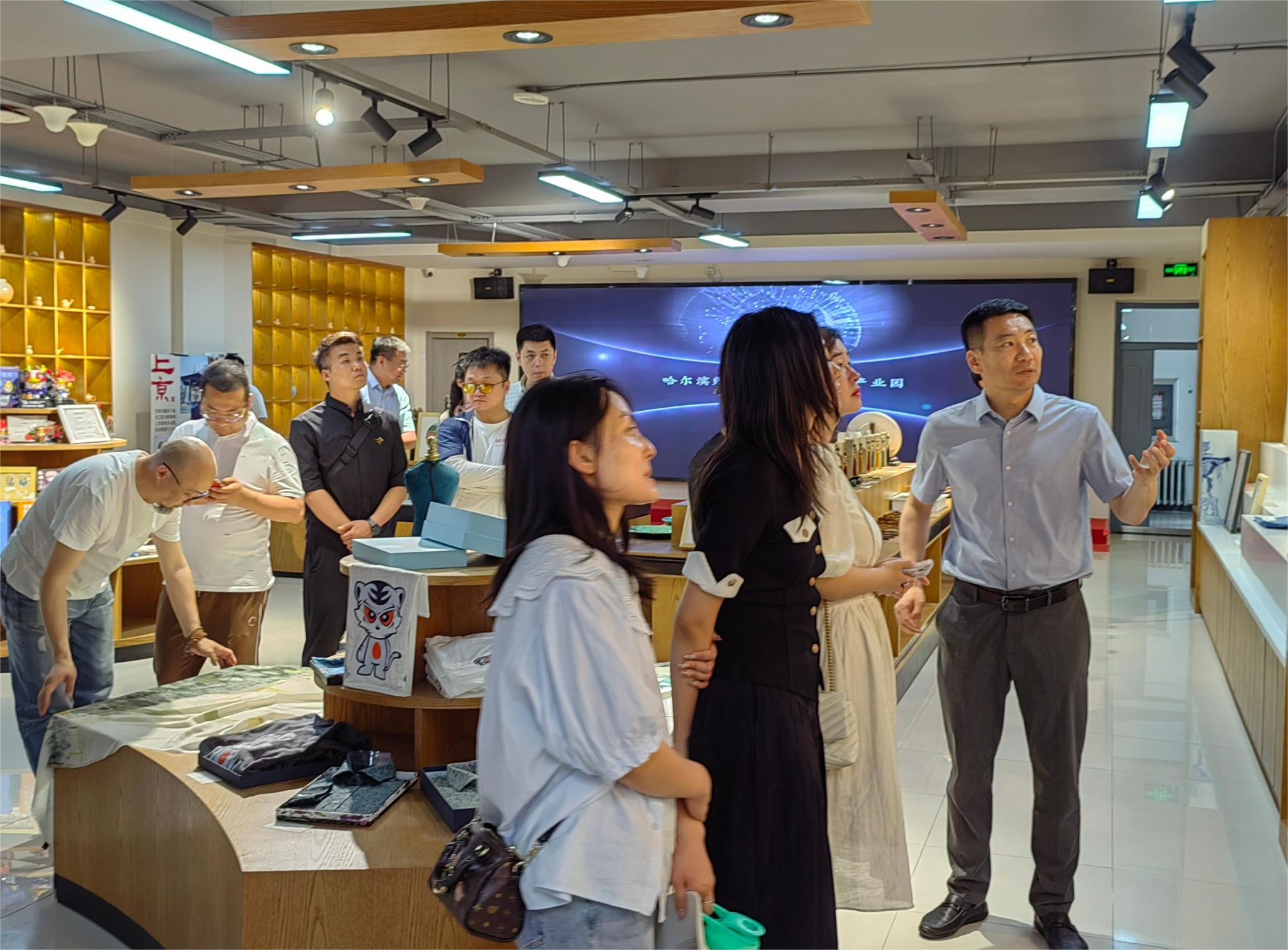 (孙慧博/文)6月26日下午,为进一步推进创意设计产业融合发展、寻求创意设计合作机遇,黑龙江省创意设计产业协会秘书处组织哈工大建筑与设计学院、省科学院智能制造研究所、哈尔滨学院创意设计产业学院、松雷集团、爱威尔科技、众德伟业等15家理事单位,访问我校创意设计产业园区,实地了解我校创意设计产业园发展建设情况和取得的成效。协会副秘书长张嘉楠,园区管委会办公室主任、传媒学院党委书记郑方明、园区工作人员及全体入驻教师团队参加此次活动。