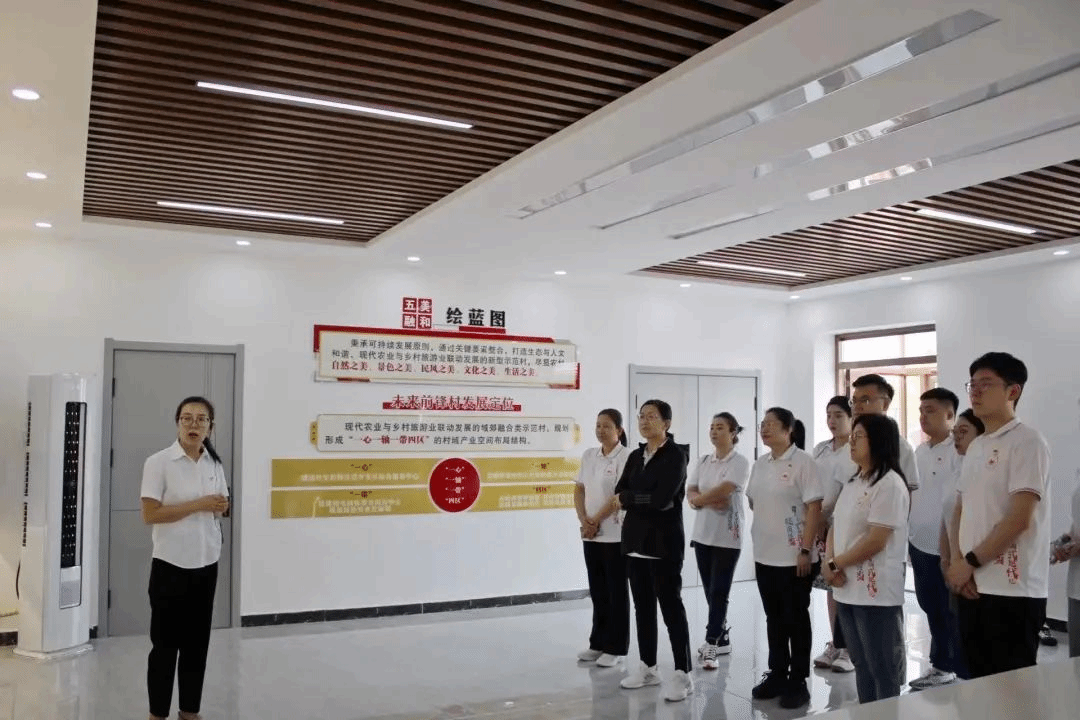 社会实践团队来到一心乡前锋村党群服务中心进行参观,开展主题党日活动。一心乡党委委员、组织委员阮方进行讲解。前锋村现有47名党员,先后荣获省级生态村、美丽家园示范村、市级文明村等荣誉称号。前锋村的135党建工作体系,即“树立一个工作目标”“建立“3+X”党建工作制度”和“五个好为工作方向”极具特色;此外,前锋村还设有“爱心浴室”“群众文化活动室”等场所,提升村民的幸福感。