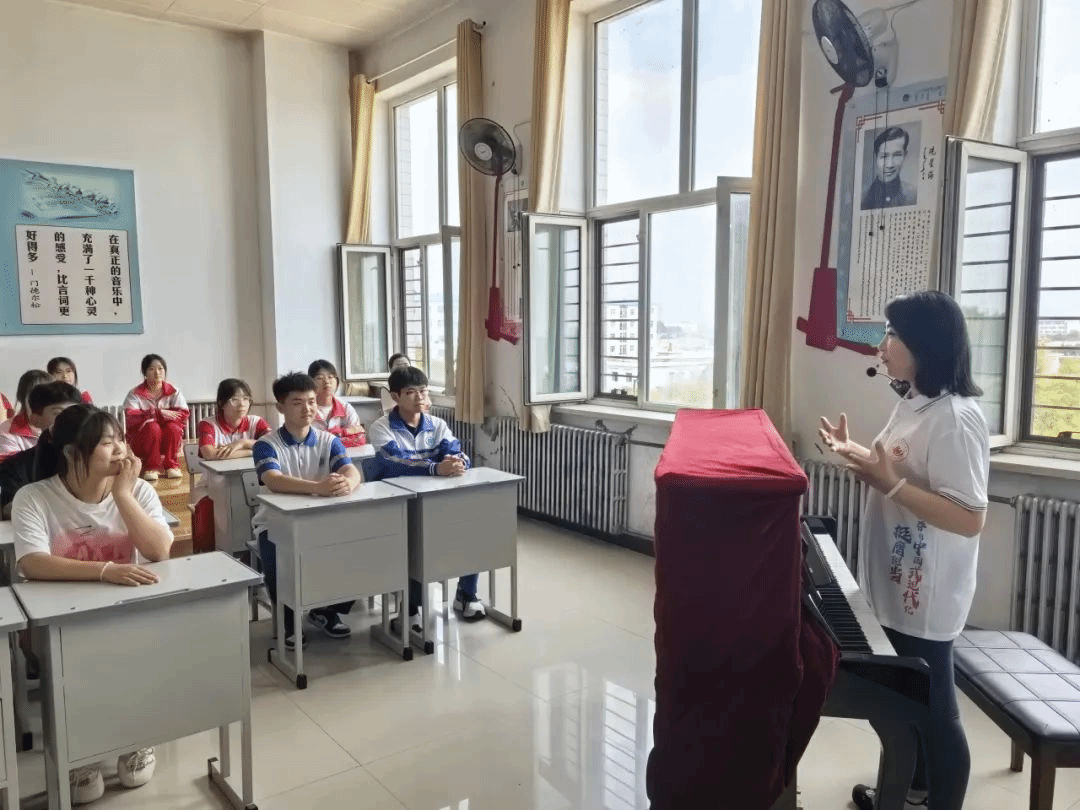 下午,民族声乐系教师何亚男来到了杜尔伯特蒙古族自治县蒙古族中学为有音乐兴趣的蒙中学子们讲授了一堂音乐课。为了能够让同学们提前感受大学上课氛围,何亚男对同学们进行了一对一声乐指导并示范。