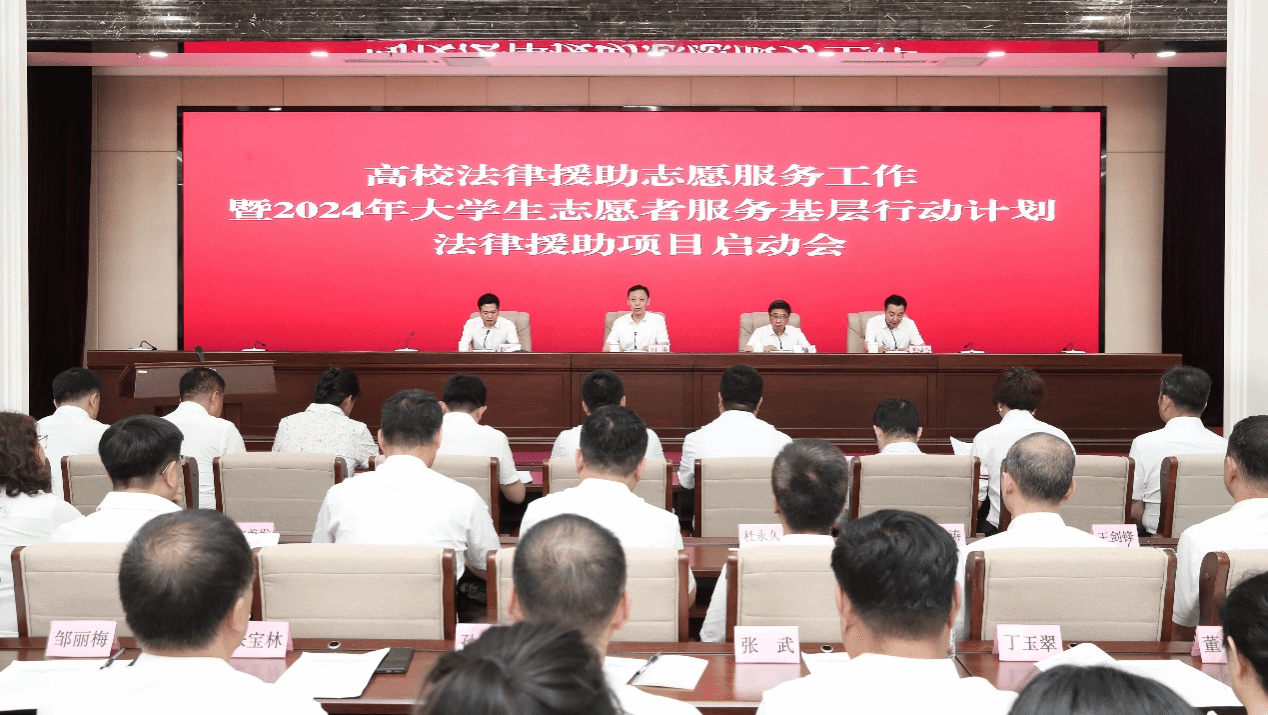 (孙振轩/文)7月25日,黑龙江省司法厅、黑龙江省委社会工作部、黑龙江省教育厅、共青团黑龙江团省委共同召开高校法律援助志愿服务工作暨2024年度大学生志愿者服务基层行动计划法律援助项目启动会。我院2024届毕业生黄馨莹、赵秀雅、汪轶男、李兴华、刘蕊、陈家兴经选拔成为本年度黑龙江省大学生法律援助志愿者,他们将积极投身于基层法律援助志愿服务项目中。我校法学院院长白云教授受邀出席此次大会。
