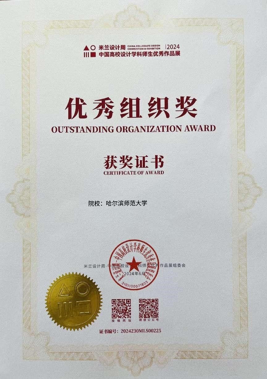 我校师生经过多轮角逐,在国赛中获奖7项,其中一等奖1项,二等奖2项,三等奖4项,充分展现了我校师生的创意设计水平。同时,哈尔滨师范大学也被授予最佳组织奖。