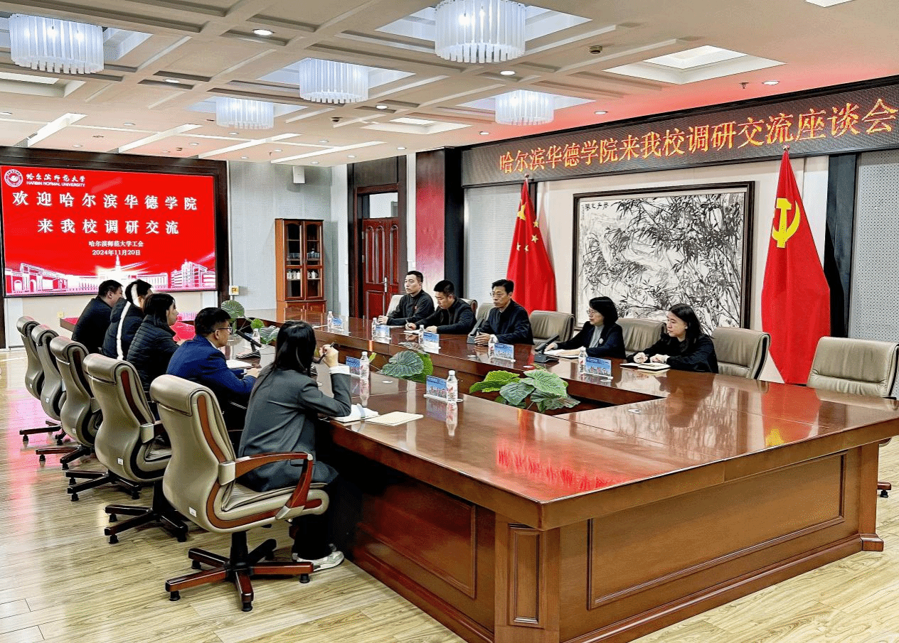 11月20日上午,哈尔滨华德学院党委副书记、副校长、工会主席邓维娜等一行5人来我校就工会工作进行调研。我校工会常务副主席杨世君及工会全体人员参加交流座谈会。