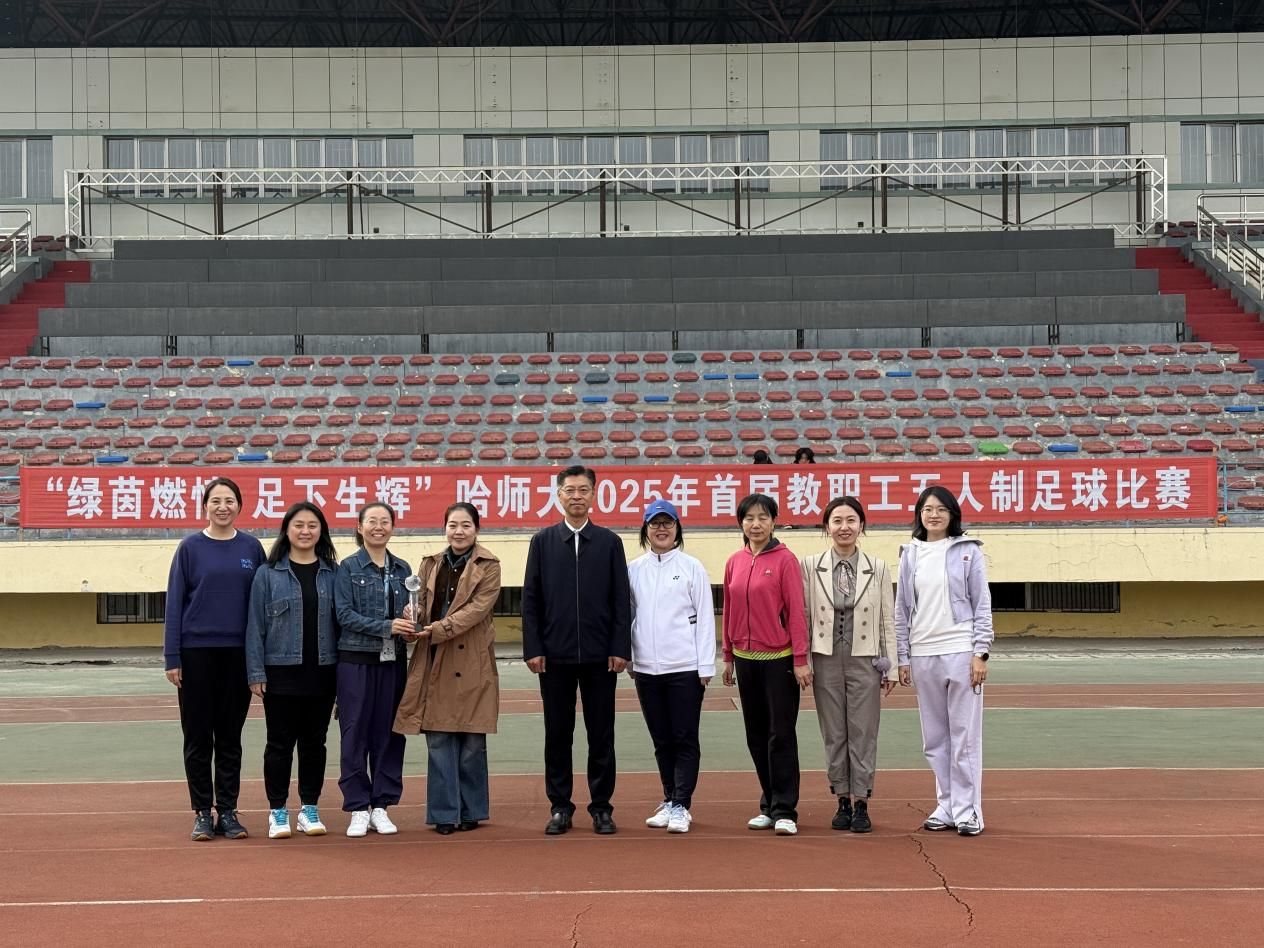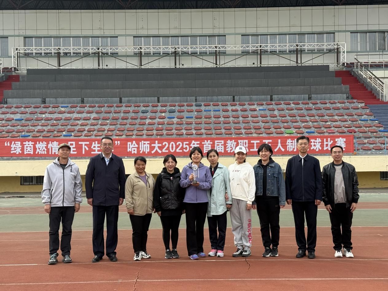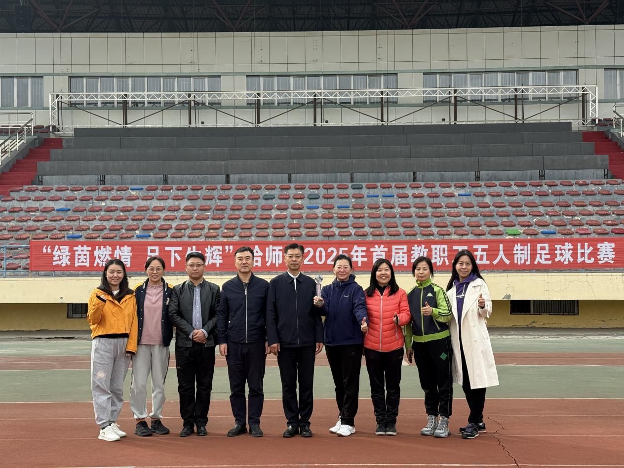 10月11日中午,历时7天激烈角逐的“绿茵燃情 足下生辉”哈尔滨师范大学2025年首届教职工五人制足球比赛在主校区体育场圆满落下帷幕。校长蒋鲲,党委常委、副校长尹剑锋,党委常委、副校长徐国峰,党委常委、副校长李岗到现场观看比赛。闭幕式由校工会副主席李立平主持。