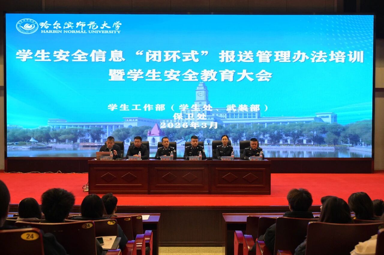 为进一步深化校警联动机制,全面落实新学期校园安全管理工作要求,筑牢平安校园防线,3月11日下午,我校联合哈尔滨市公安局松北分局在主校区科学会堂举行公安普法进校园暨新学期学生安全教育大会。哈尔滨市公安局松北分局相关负责同志,学校相关职能部门负责人,各学院学工办主任及学生代表参加。